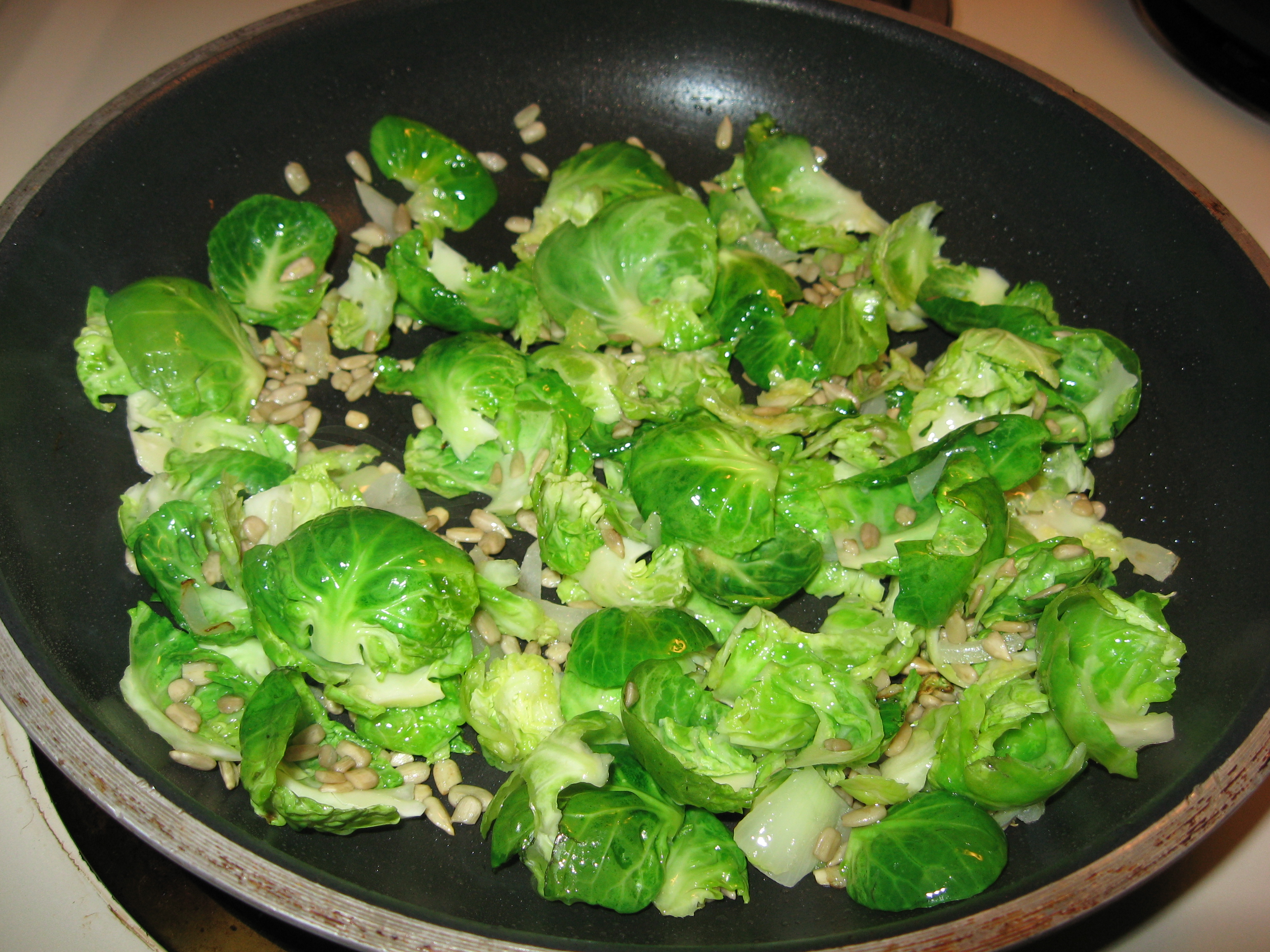 - Thanks to Alex duMauriee, here is one more recipe: 3 Tblsp. grape seed oil; 1 Tblsp. minced shallot; 12 large Brussels sprouts trimmed and leaves separated from the cores (about 8 C.); 3/4 C. shelled pistachios (salted or not); 2 Tblsp. lemon juice. Heat oil in large nonstick skillet over med. hi; add shallot and stir 20 seconds; add Brussels sprout leaves and pistachios and sauté until leaves begin to soften but are still bright green(about 3 min.); drizzle lemon juice over; season with S&P. YUM. Thank you Alex.