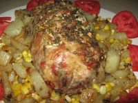 caribben pork in dish Published January 22, 2013 at 3072 × 2304 in Roast Pork Shoulder with a Caribbean Fling with a Side of Braised Celery and Julienned Carrots Also With a Caribbean Fling