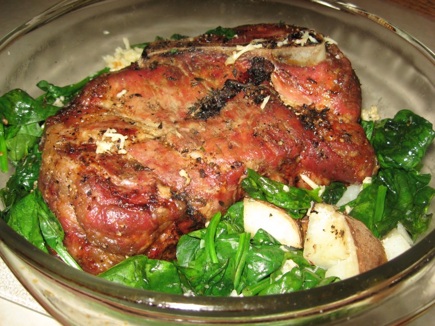 Pork with spinach and potatoes