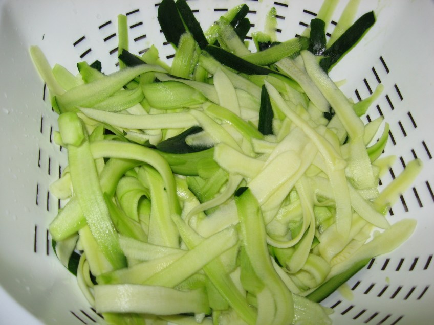 zucchini ready to be made into pasta (2) Published October 15, 2013 at 3072 × 2304 in Zucchini Pasta Topped with Roasted Tomatoes, Basil Pesto and Walnuts