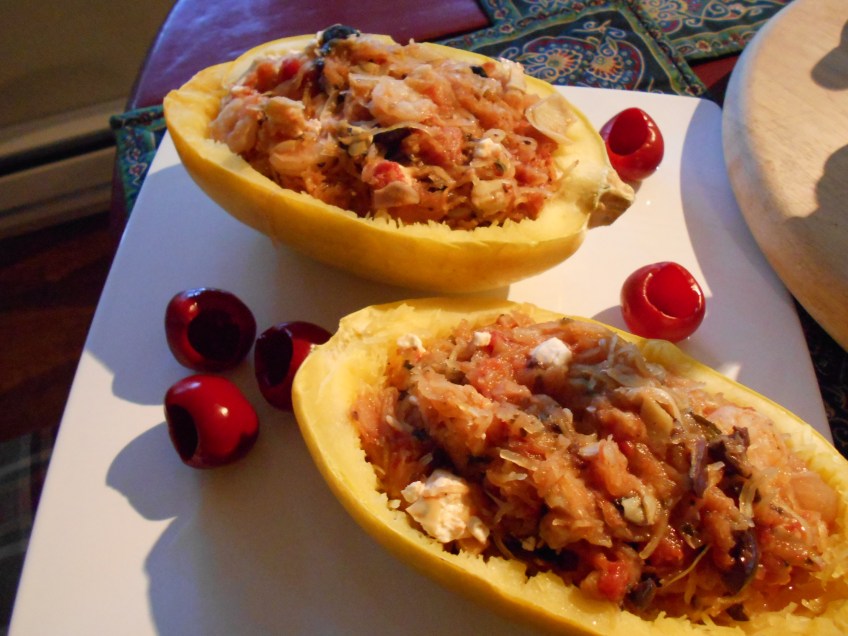 mediterrean spaghetti squash Published October 4, 2014 at 3648 × 2736 in Mediterranean Stuffed Spaghetti Squash